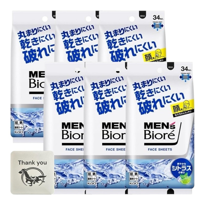 - Kao Men's Biore Face Sheet, Refreshing Citrus Scent, 34 Sheets