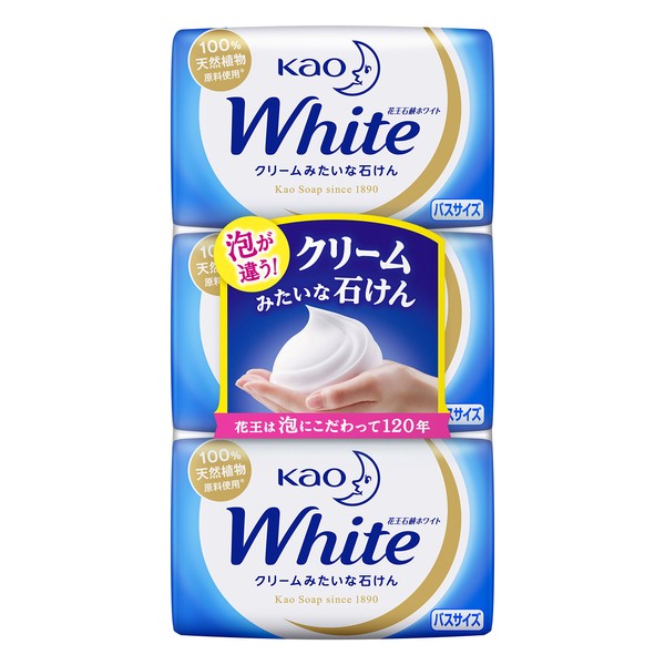 Kao Soap White Bath Size Gentle Washable Cream Soap We use a generous amount of vegetable ingredient "natural soy milk *1" for rich foam and fine foam. 100% plant ingredients x 2 (soap) ; Natural squalanes (moisturizing ingredient); Elegant white floral fragrance; Large washable bath size x 1, germ milk x 2, soap-based ingredients are used with vegetable oils (soap, soap, seken, soap)