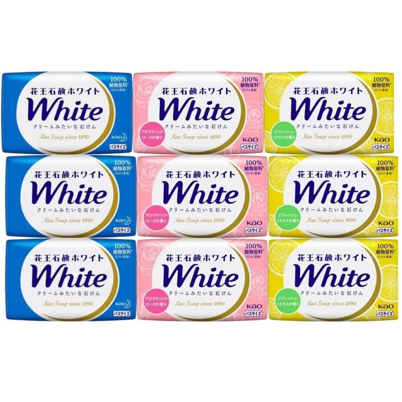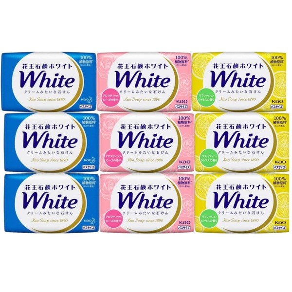 Kao White Solid Soap, Bath Size, 4.6 oz (130 g), Aromatic Rose, Refresh, Citrus, White Floral, Set of 3, 9 Pieces, Post Mailing