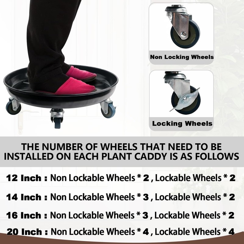 - CASTERS: Equipped with 8 solid rubber casters, this plant caddy glides silently and smoothly while protecting your floors from scratches. 4 of the casters are lockable, allowing you to securely position the plant stand with wheels in any desired location.