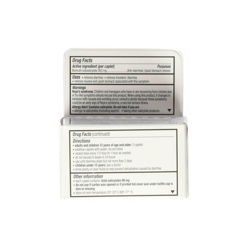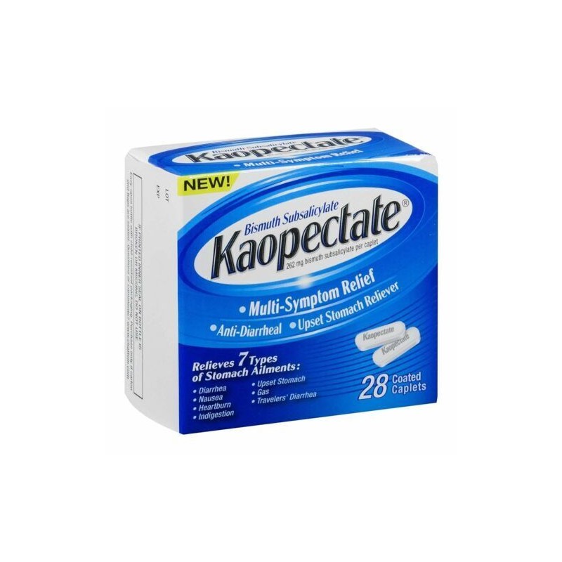 Get quick and effective help from stomach discomfort and painful symptoms with the Kaopectate Multi-Symptom Reducer Bismuth Subsalicylate. It reduces seven types of stomach ailments, including diarrhea, nausea, heartburn, indigestion, unsettled stomach, gas and traveler's diarrhea. These coated caplets go down easily and are pre-dosed to help you feel better quickly. Swallow two of them when symptoms occur, and repeat this dose every 30 to 60 minutes as needed. Each pack comes with 28 caplets, enough to last you a while.