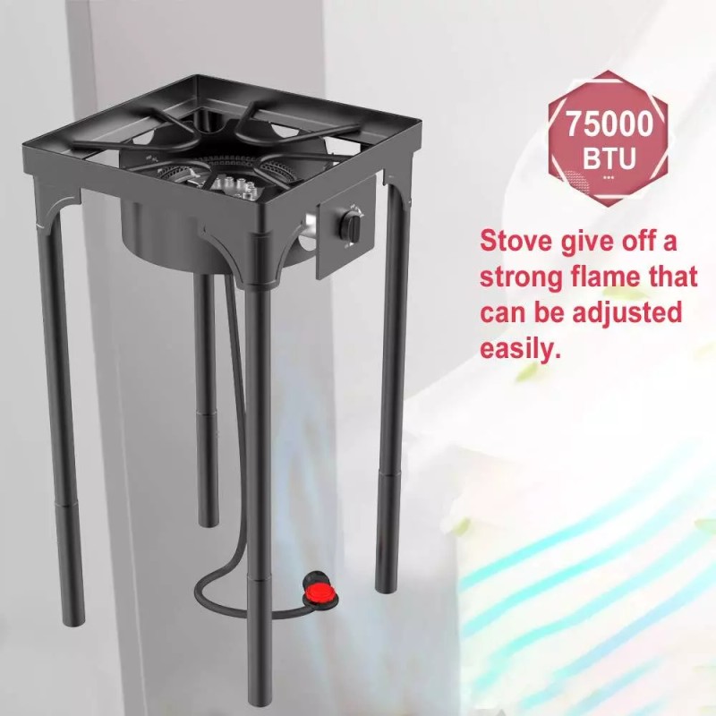 - High Pressure and Effective Heat Output- 75000 BTU Single and 150000 BTU Double Burners. Easy Control with Adjustable Heat-Control Regulator Knob.