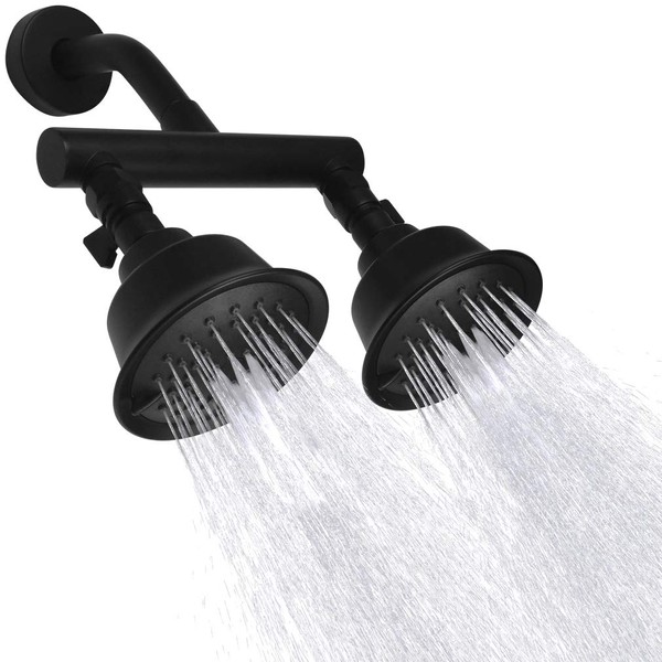 KAPHOME Double Shower Head with Shower Shut-Off Valves,2 Shower Head for Bathing,Dual Shower Head High Pressure 3 Function Sprayers,Matte Black