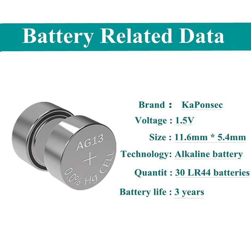 • Long life: KaPonsec LR44 battery has a low self-discharge function and has a life of up to 3 years. Unused batteries can effectively save power during storage.