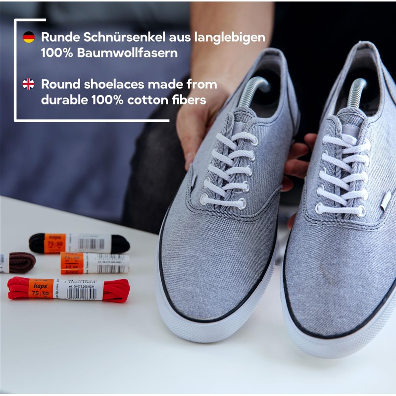 Kaps round shoelaces, high quality durable 100% cotton shoelaces, Made in Europe, 1 pair, many colours and lengths. - -