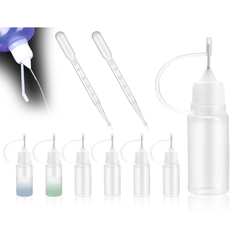 - PACKAGE INCLUDES 6 Needle Tip Applicator Bottles (5ml) + 2 3ml Dropper Dropper The bottle is small and lightweight and can be easily taken with you when going out.
