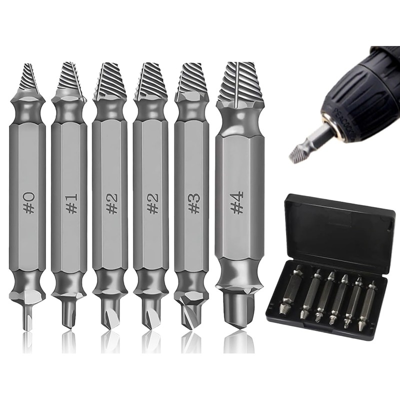 - [Multifunction Auger Drill Bit Set]:This set includes 6 multifunctional auger drill bits for removing damaged screws or nuts. They have been specially designed to solve the problem of loose, damaged or stuck threads and provide a quick and effective solution.