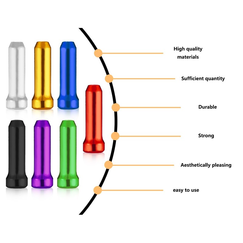 - [Dimensions]: the end cap length of the brake cable cap is 12mm, the hole diameter is 2mm. Suitable for all types of mountain bike and racing brake cables and shift cables.