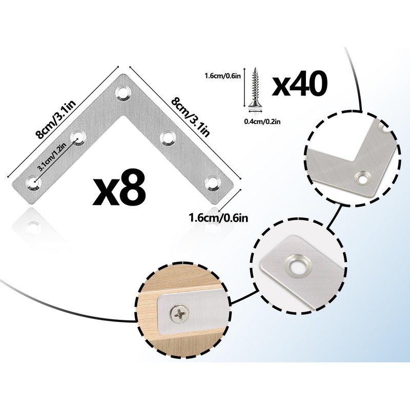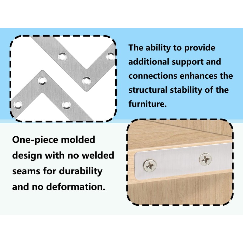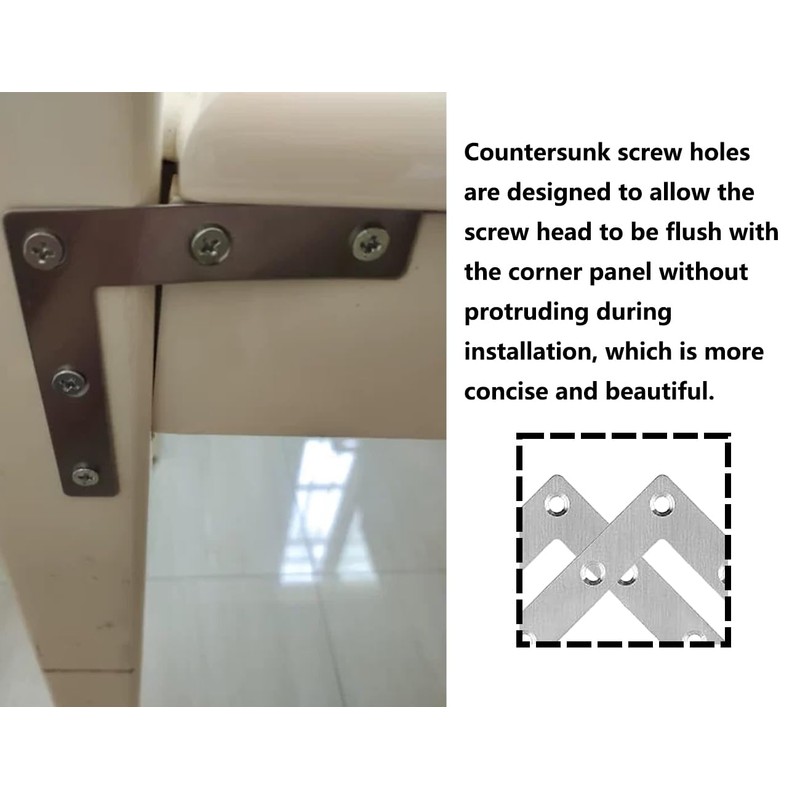 - High-quality stainless steel material: this L-shaped corner code is made of high-quality stainless steel, it has excellent durability and is not easy to rust, it can be used for a long time, it can provide continuous support for the firm connection of the furniture.