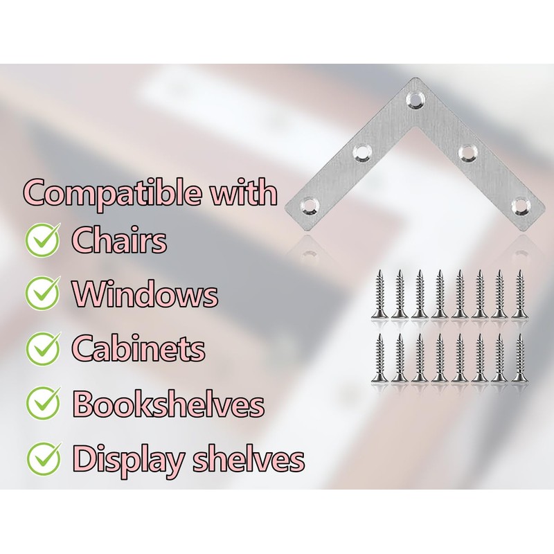 - Multiple applications: this corner code is perfect for use in a variety of occasions such as home, office, studio, garage and so on. Commonly used to repair broken parts of furniture such as bed frames, chairs, tables, etc., as well as fixing elements on furniture or shelves.