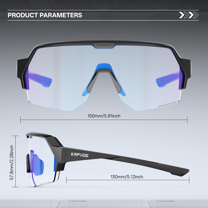 KAPVOE Cycling Glasses, Self-tinting for Men and Women, Photochromic Cycling Glasses, Sunglasses with UV400 Protection, Sports Glasses for Bicycle, MTB, Unisex K360