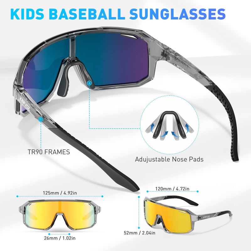 - 【Multifunctional Applicability - Infinite Possibilities】KAPVOE kids' sports sunglasses are suitable for a wide range of outdoor activities, including biking, baseball, running, softball, mountain biking, hiking, boating, skiing, mountaineering, fishing, and more. No matter what sport your kids are involved in, these sunglasses provide excellent visual protection and a stylish look.