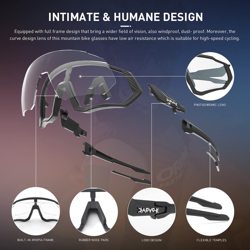 KAPVOE Photochromic Cycling Glasses For Men Women MTB BMX Clear Sports Sunglasses Running Volleyball Tennis Driving Fishing Softball Mountain Golf Hiking 02