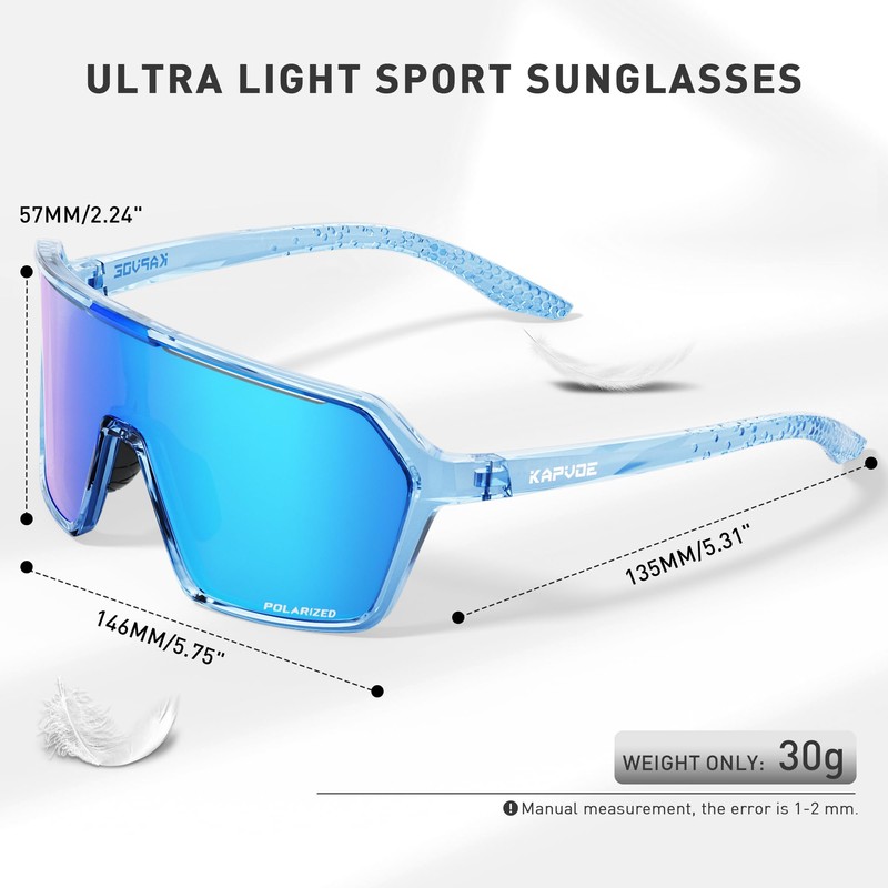 - 【POLARIZED SPORTS GLASSES】Polarized lenses can filter reflected light, especially from water surfaces, blocking the glare caused by scattering, refraction, and reflection. These sunglasses protect your eyes from harsh rays that cause eye fatigue, provide comfortable vision, and enhance the sharpness of objects.