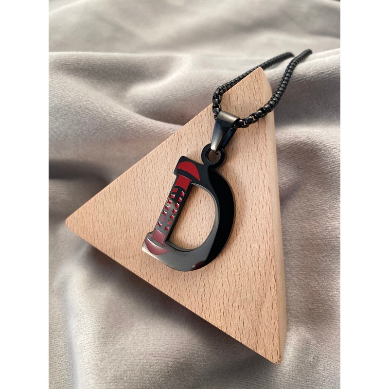 Kar Nann Football Stainless steel D English Alphabet Necklace black letter Pendant for Men women