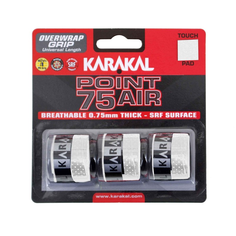 Karakal Point 75 Air Overwrap Grip - Pack of 3, Color- White