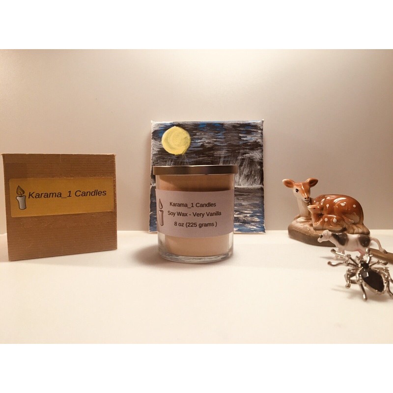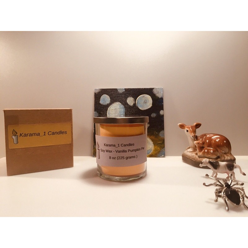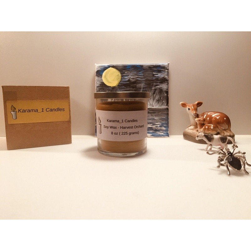 Karama_1 Candles offers a handmade, nature-themed scented candle made of soy wax in a medium-sized, straight side tumbler jar. The candle has a burning time of 3-4 hours and comes in assorted/mixed scents. The jar measures 3.11 inches in length, 3.38 inches in width, and 3.56 inches in height. It weighs 8 oz and is suitable for any room.