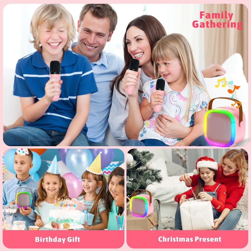 - Compact and Portable-Mini kids karaoke system is designed with a durable handle,which is lightweight, wireless and highly portable.Perfect for family gatherings, birthday party, school activities,travel etc.Ensuring endless fun and creativity for children while the colorful LED lights sync to the music, enhancing the party atmosphere