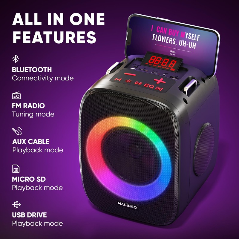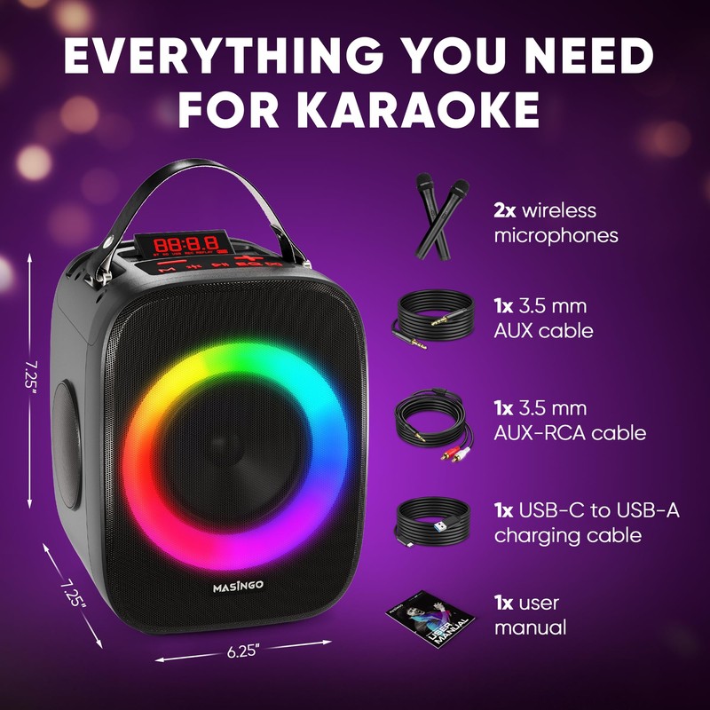 Karaoke Machine for Kids and Adults with 2 Wireless Bluetooth Microphones, Portable 3D Sound Speaker with Colorful LED Lights, Supports TF Card/USB, AUX in, FM, TWS for Home Party, MASINGO Cantando C2