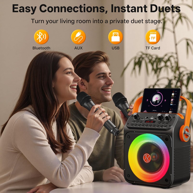 - Compact, Portable & Family-Friendly: Lightweight and easy to carry, this karaoke machine is perfect for both kids and adults. Whether you’re at home, in the backyard, or on the go, the compact size makes it easy to bring the party anywhere—from family nights to weekend camping trips