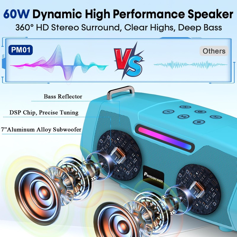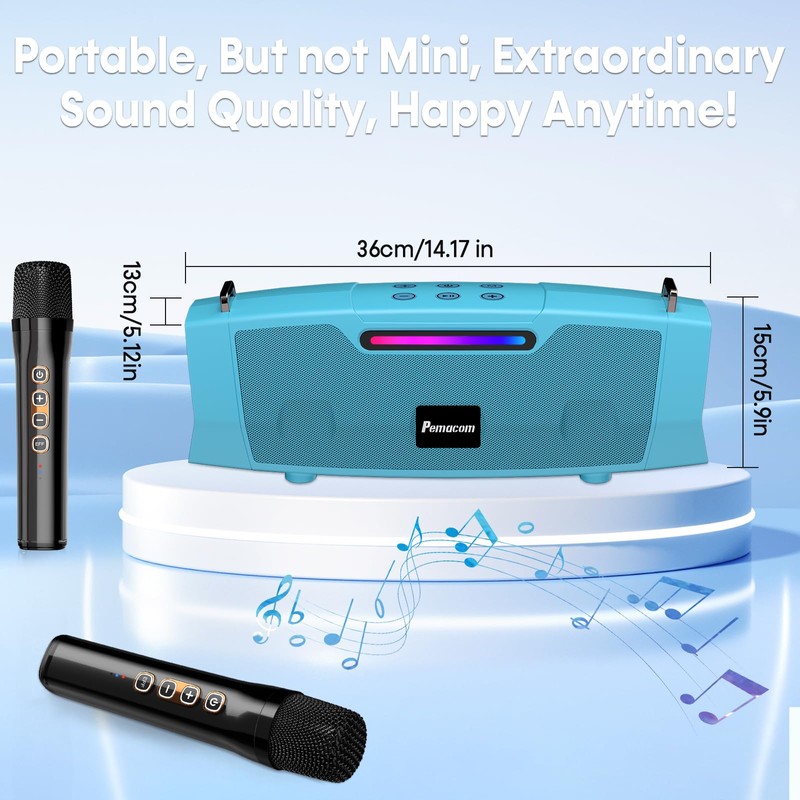 Karaoke Machine with 60W Powerful Sound - Portable Karaoke System with 2 Wireless Microphones, Bluetooth 5.3, Long Battery Life for Outdoor & Family Party, Ideal for Young Man,Teenagers, Boys - Blue