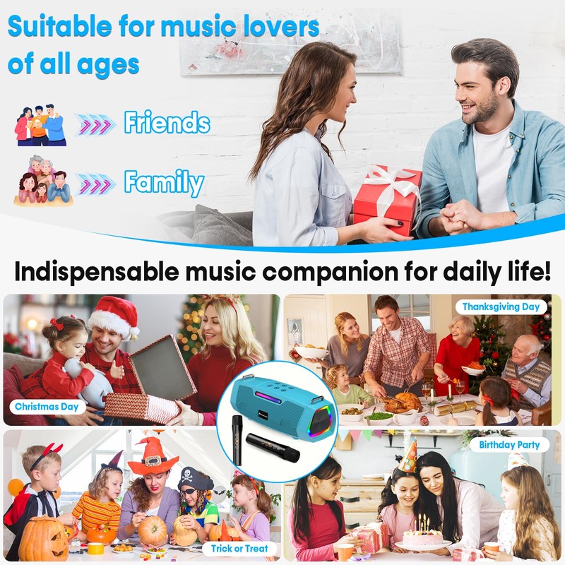 - PERFECT GIFT CHOICE FOR ALL OCCASIONS: Portable karaoke machine is the best gift for young man, teenagers, boys, families, friends, travelers, and music enthusiasts. Ideal for family, outdoor, birthdays, all kinds of festivals, New Year, travelling, holidays and parties, it spreads joy and creates unforgettable memories, making every celebration lively and fun