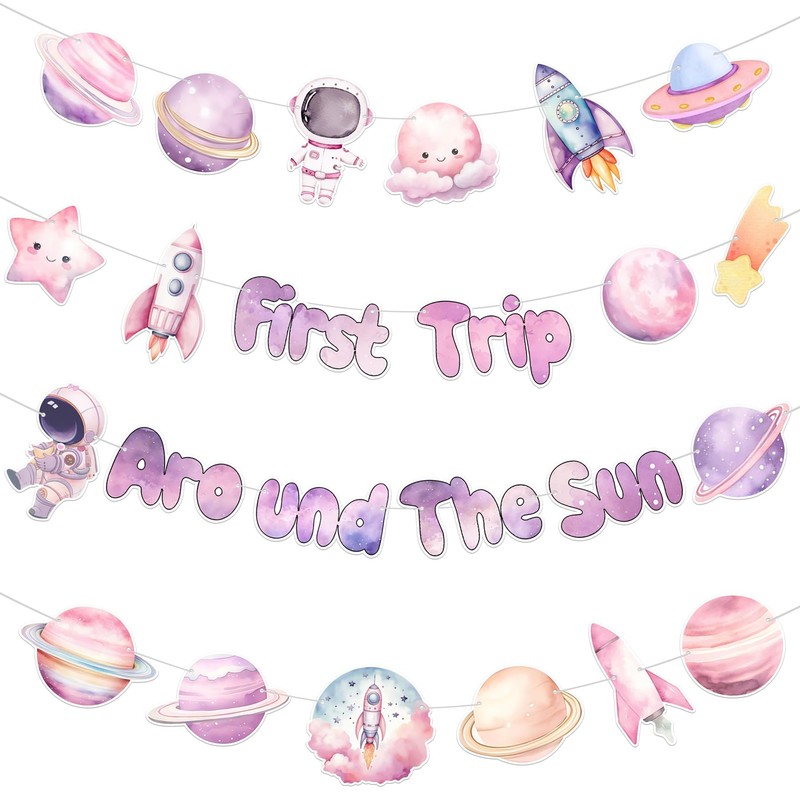 KARAQY - Banner para fiesta de primer cumpleaños con temática espacial