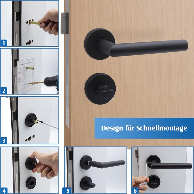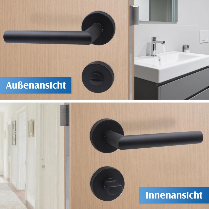 KARATINTL Toilet Door Handle Set, Black, Bathroom Door Handle, Matt Black for Bathroom, DIN Standard (Black Toilet, Bathroom)