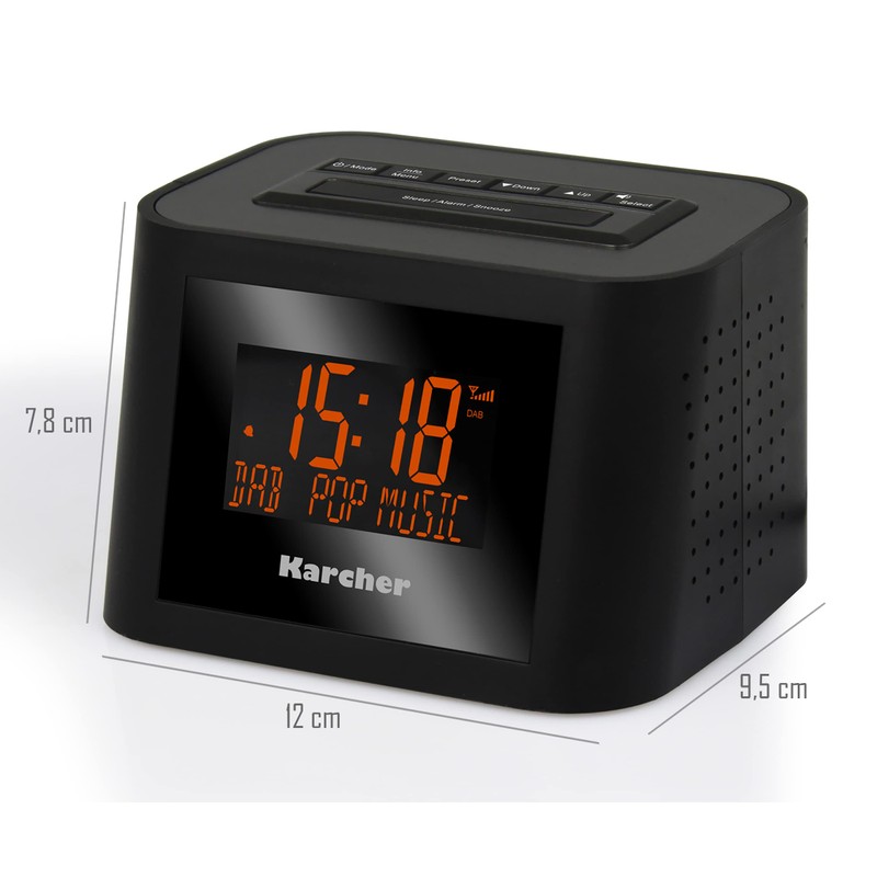 - Perfect start to the day – with the DAB clock radio from Karcher you will experience excellent radio enjoyment and reliable alarm functions for an energetic morning.