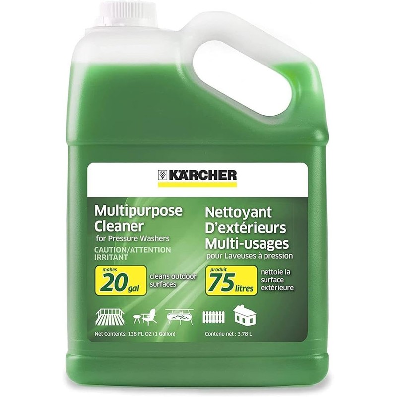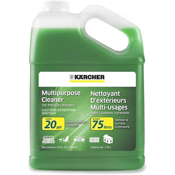 peed up your pressure washing with the help of Kärcher's Multipurpose Detergent. This concentrated soap formula makes up to 20 gallons of ready to use detergent – you control the amount of dilution. Kärcher detergents are specially formulated to work in tandem with your pressure washer to help you clean more quickly. Reduce the amount of time it takes to clean decks, driveways, sidewalks, home siding, patio furniture, fences and more, and clean more thoroughly to boot! This formula is biodegradable, made in the USA and is compatible with all Kärcher Home & Garden pressure washers, as well as consumer pressure washers made by other brands.