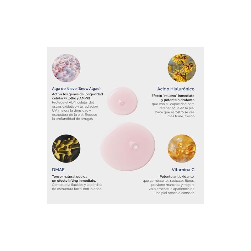 - ๐ฌ Tecnología Anti-Edad: Péptidos bioactivos, ácido hialurónico de bajo peso molecular y antioxidantes para regeneración celular profunda