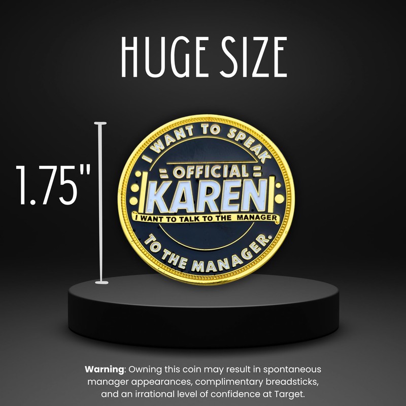 - Hilarious Decision-Making Coin – Stuck in a tough situation? Flip this Karen Coin to decide whether to "Speak to the Manager" or "Let It Go."