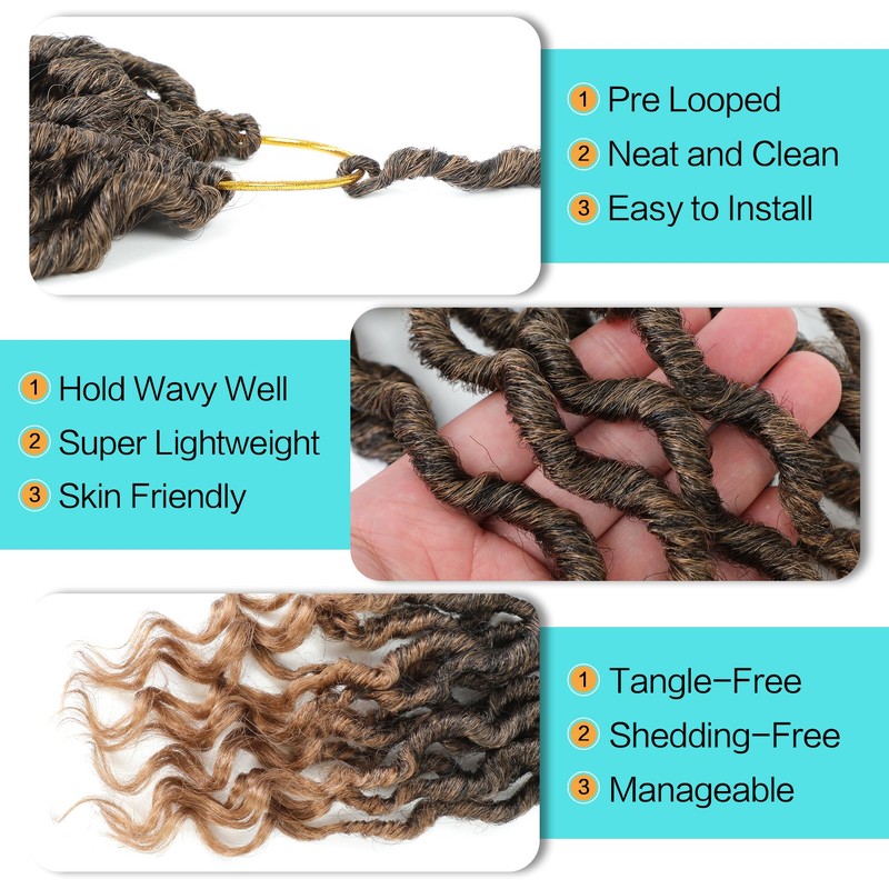 Faux Locs Crochet Hair Is Made By High Quality Synthetic Hair, Goddess Locs Crochet Hair is Already Twisted, Each Strands Individually Pre-looped, Easy to Install.