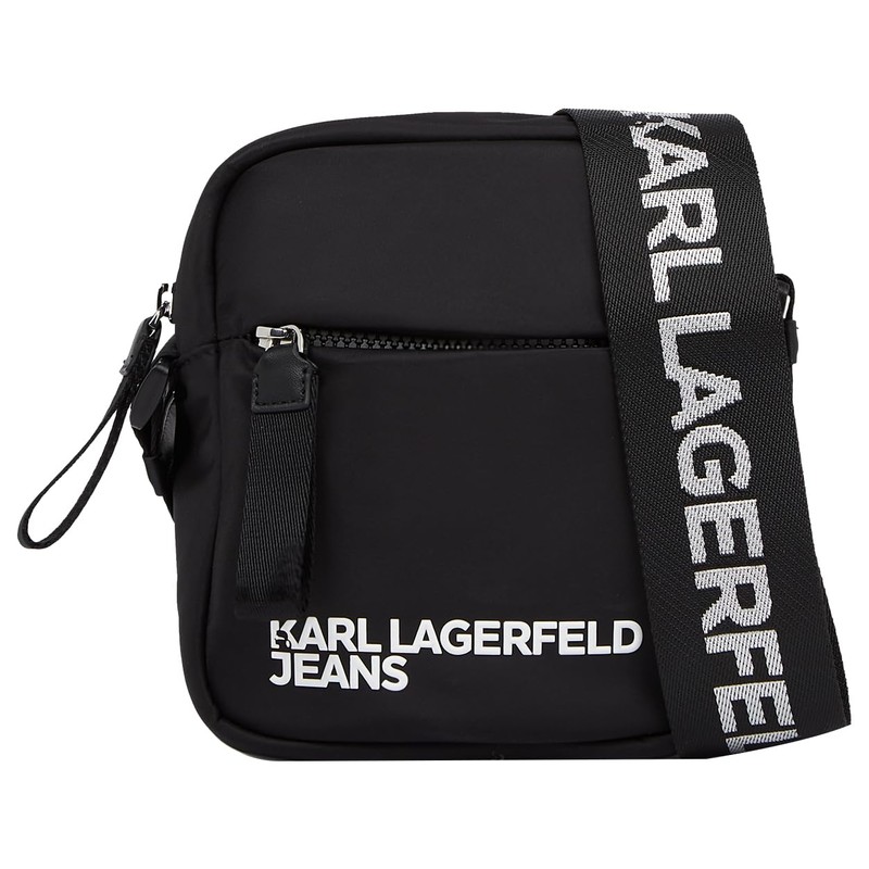 KARL LAGERFELD JEANS Men's Essential Nylon Crossbody, Black, black