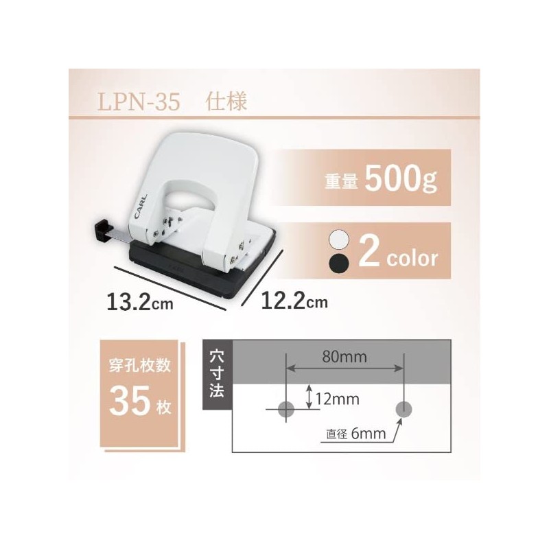 Karl LPN-35-W Office Machine, Light Open Punch, Small, Alysis, 2 Holes, 35 Pieces, White