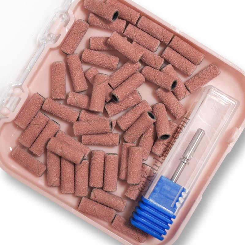 Karlash Professional Nail Mini Sanding Bands Pink Coarse Grit File + Mini Mandrel Bit