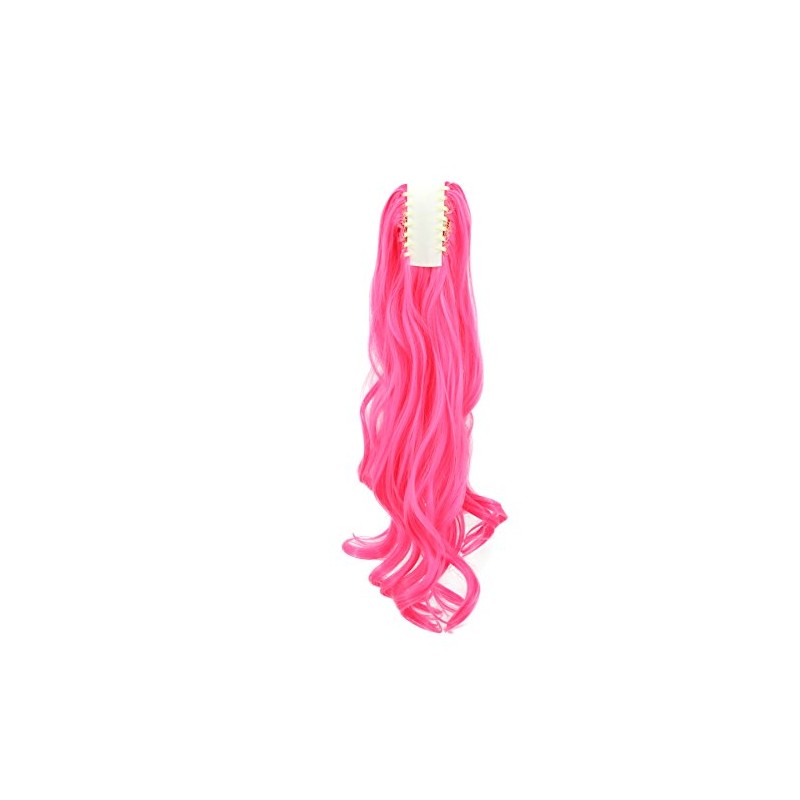 karlery Curly Clip In Thick Claw Drawstring Ponytail Extension Multi-colored Hair Pony Tail Hair Extension (Hot Pink)