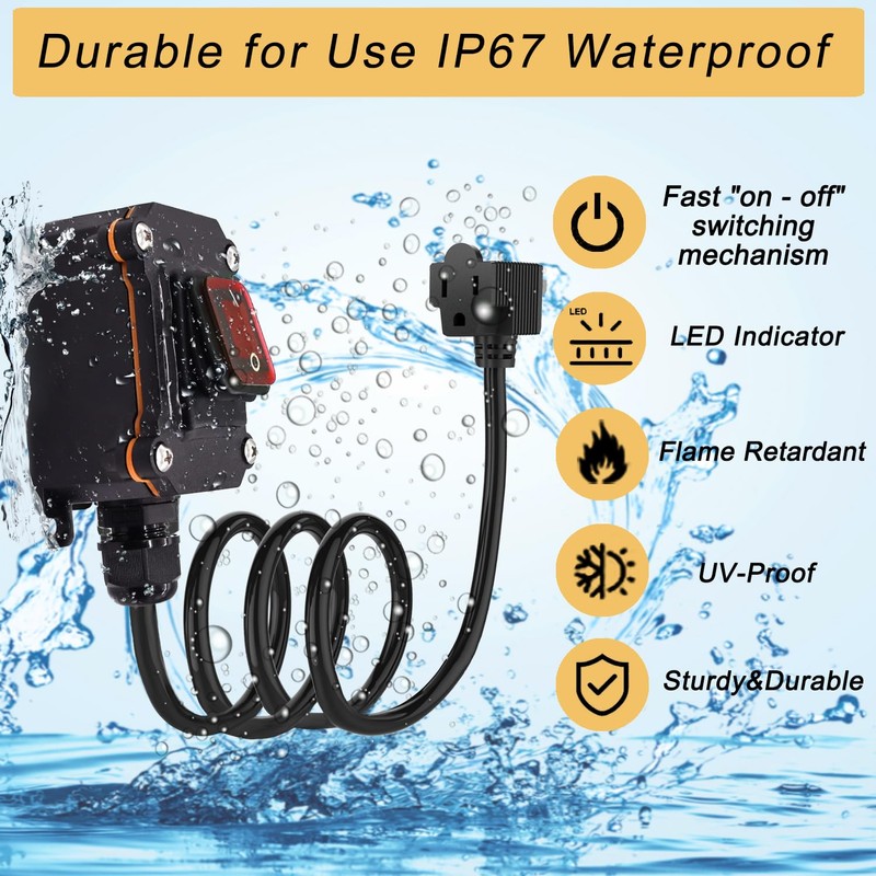 - 【HEAVY-DUTY SWITCH】: Our waterproof plug-in switch has a lifespan of over 10000 times. The shell is made of high quality flame-retardant PA66 material, characterized with high tensile strength, flame retardant, and electrical insulation. The cable adopts 14 AWG heavy-duty cable and 100% genuine copper wire, which is more durable, sturdy, and reliable in quality. The cable specification is 14AWG 10FT/3M. Rated voltage and current: 20A 110-250V. Type: Double pole single throw, on/off