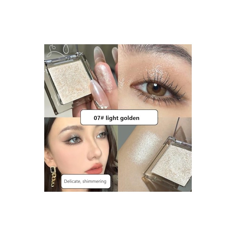 KARLOR Eyeshadow Shimmering Metallic Mother of Pearl Eyeshadow Glitter Pigmented Golden Highlighter Eyeshadow Single Colour Sparkling Shiny Champagne Eyeshadow Glitter Sparkle (07# Light Gold)