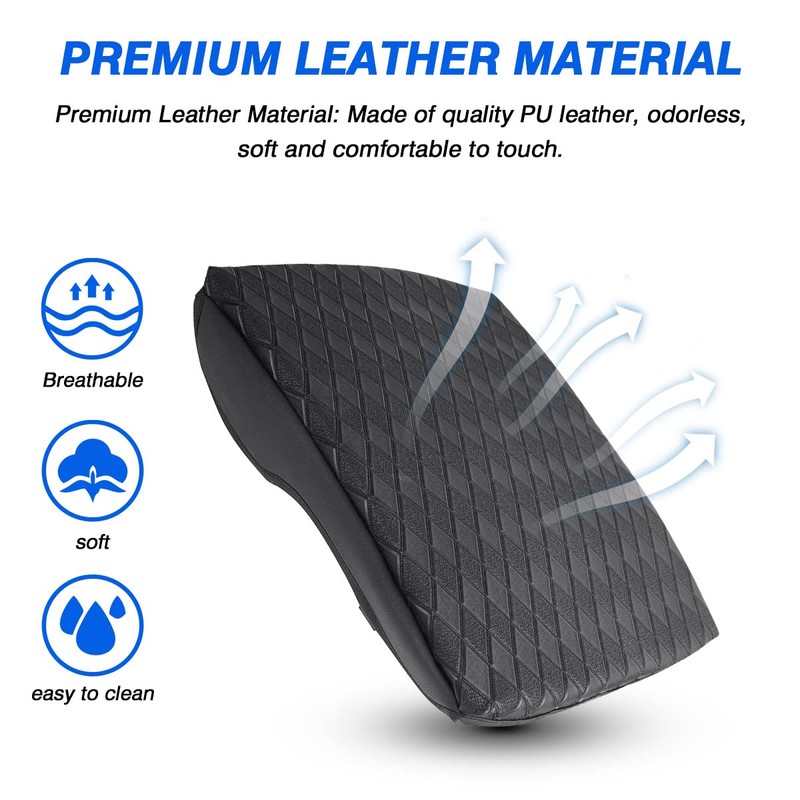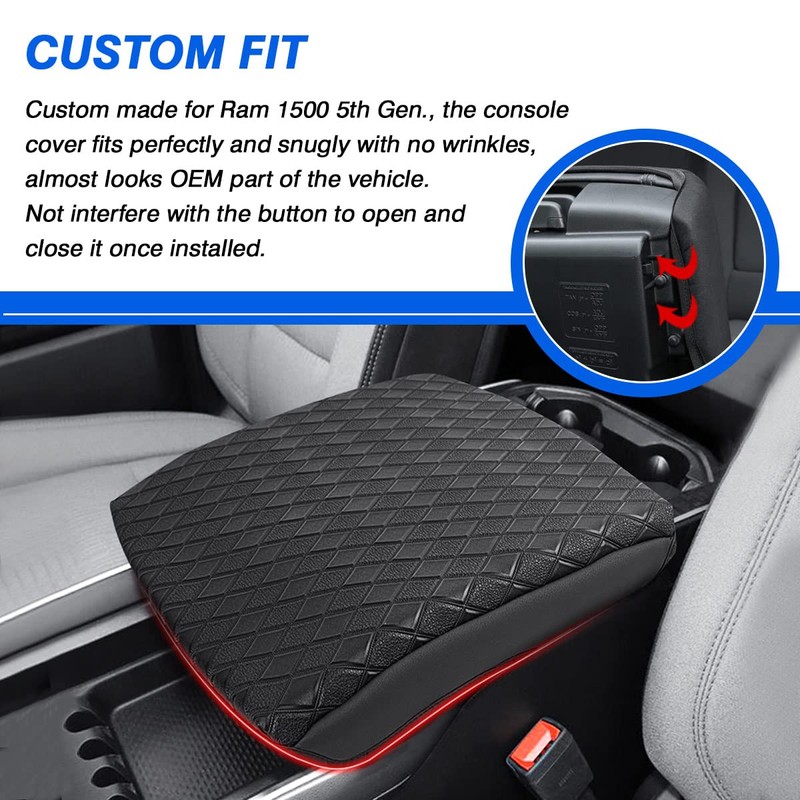 - 【Premium PU & PVC Leather】Made of quality and breathable PU and PVC leather, odorless, soft and comfortable to touch. The truck center armrest console cover for dodge ram 1500 is thick enough to add comfort to your ride, make you feel better to rest your arm and relieves stress of elbow while driving.