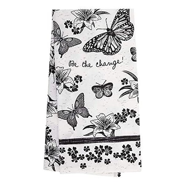 Karma Gifts Black and White Boho Tea Towels, 28" L x 20" W, Butterfly