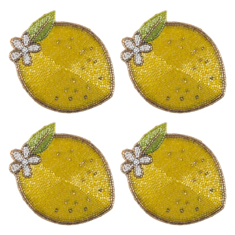 Karma, Lemon Beaded Drink Coasters Set of 4, Summer Round Beaded Coasters for Dinning Table and Coffee Table, Lemon