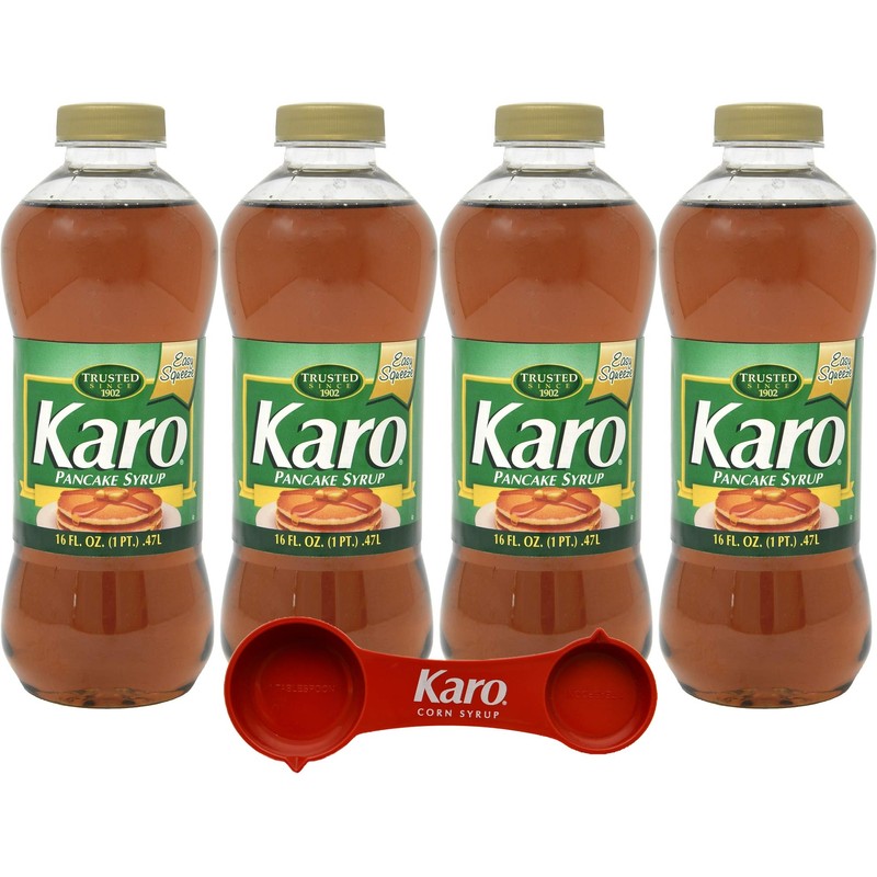 Karo Pancake Syrup, 16 fl oz (Pack of 4) with Karo Measuring Spoon