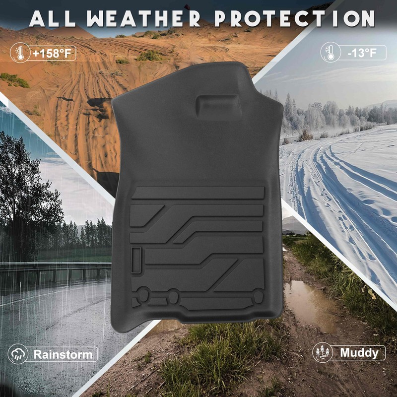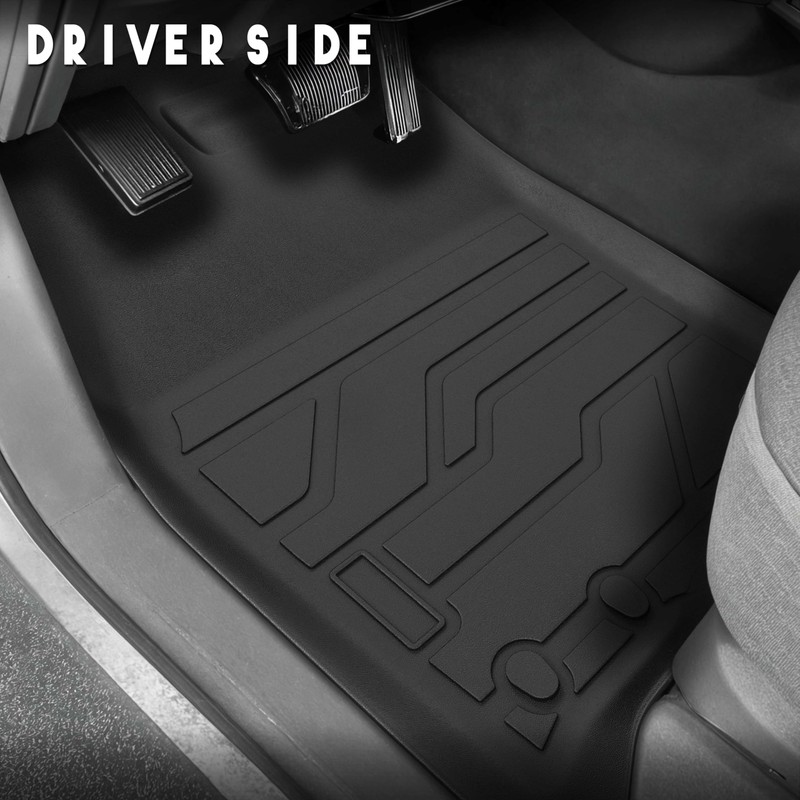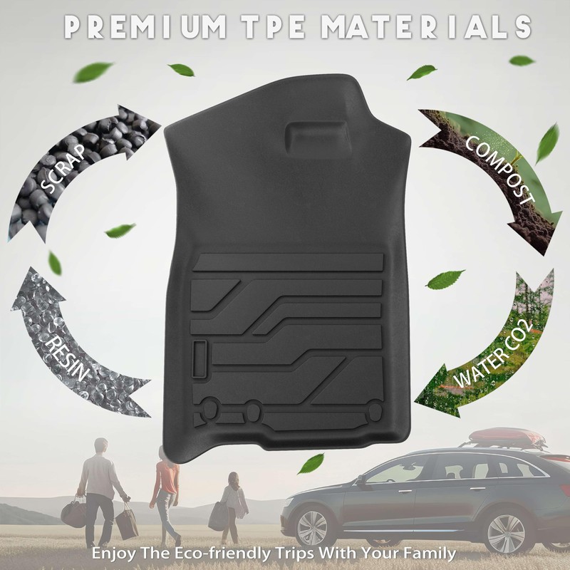 - Durable TPE Construction: Made from high-strength thermoplastic elastomer; resists cracking, curling, and deformation under long-term use. The set comes with 2 front floor mats, 1 back seat floor liner