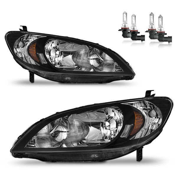 KarSpareHub Headlights Assembly W/Bulbs for 2004-2005 Honda Civic 2/4Door Headlamp Replacement Left + Right Side