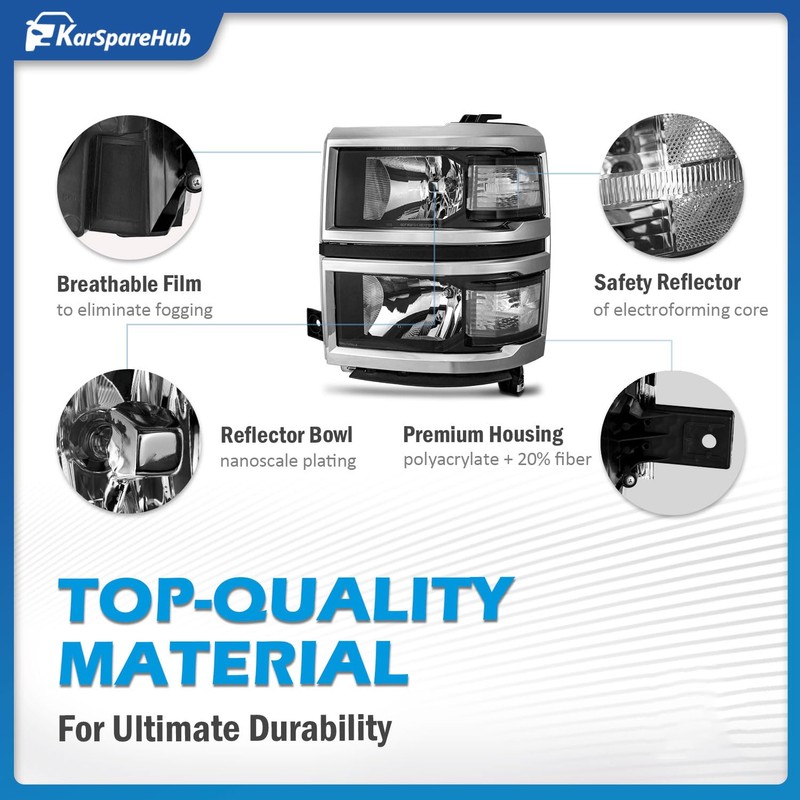 KarSpareHub Headlights Assembly with Bulbs for 2014 2015 Chevy Silverado 1500 Headlamp Replacement Black Housing Clear Reflector Driver & Passenger Side