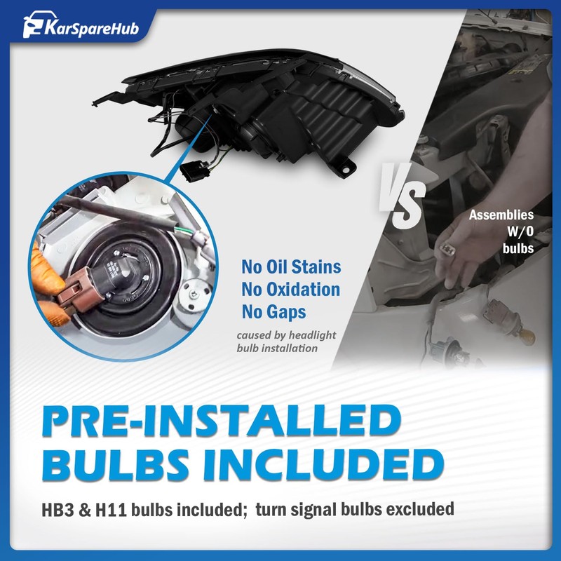 KarSpareHub Headlights W/Bulbs for 2010-2015 Chevy Equinox LS/LT Model Headlamp Replacement Driver & Passenger Side
