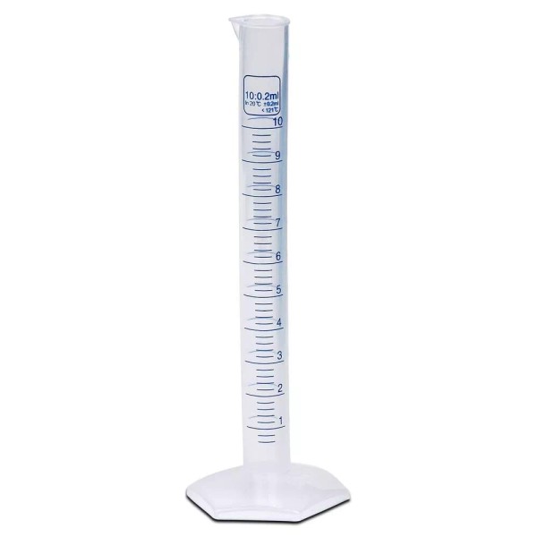 Karter Scientific 10ml Plastic Graduated Cylinder, Printed Graduations, Single Metric (Singular)
