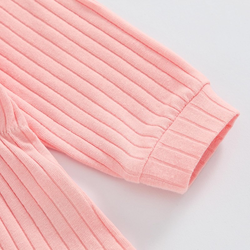 Newborn Baby Girl Fall Outfits Long Sleeve Ribbed Knit Jumpsuit Romper with Headband Infant Clothes Sets