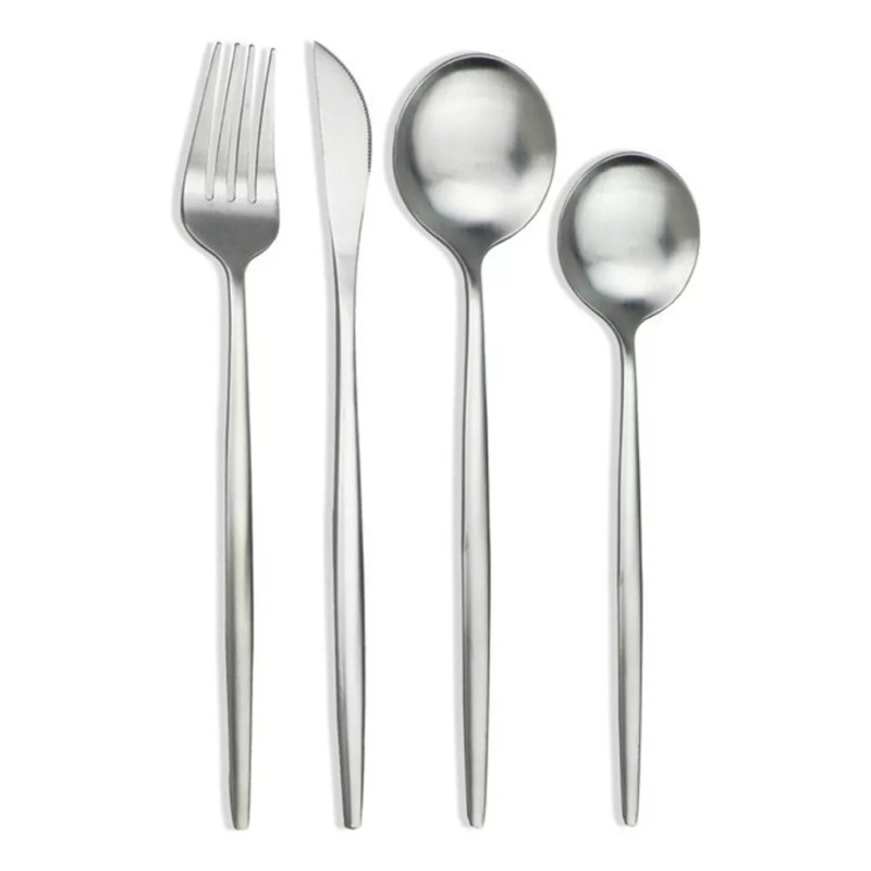 Juego de cubiertos de acero inoxidable cromado ligeros color plata mate